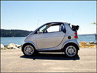 Alors, où s'en procurer une? La smart fortwo sera bientôt disponible chez tous les concessionnaires Mercedes-Benz à travers le Canada (mais pas aux États-Unis). Le prix pour la version de base, appelée "pure", se situe sous les 20 000 $, sans compter les options que vous voudrez bien ajouter. La version plus sportive et dynamique, la "pulse", comprend des jantes en alliage, un volant et un pommeau de levier de vitesse en cuir, une garniture plus riche et un contrôle de transmission monté sur le volant (à l'image d'une F-1). La fortwo haut de gamme se prénomme "passion" et est dotée de jantes en alliage à neuf bras, d'un cuir plus raffiné sur le volant et le pommeau de levier de vitesse et d'une garniture de qualité supérieure (cuir en option). On retrouve aussi l'air climatisé, un avertisseur de verglas et un indicateur de température extérieure, sans oublier les essuie-glace sensibles à la vitesse du véhicule et le système de verrouillage central qui est activé quand vous roulez. La "passion" s'habille enfin d'un exclusif coloris argent diamant métallisé.