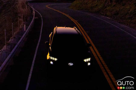 Comme pour toute image teaser qui se respecte, celle-ci n'était accompagnée que de très peu de détails. On y voit la silhouette d'un VUS surmonté de longerons de toit, circulant sur une route de montagne sinueuse. Voici ce que Subaru a tout de même précisé : le modèle offrira la traction intégrale et développera une puissance totale de 420 chevaux grâce à sa motorisation électrique.