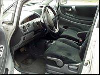 Si le dessin de la planche de bord s'avère très original, on ne peut cependant pas dire qu'il est un exemple d'ergonomie. La radio, placée au sommet de la partie centrale est en retrait et oblige le conducteur à quitter sa position pour l'atteindre. Même chose en ce qui concerne les commandes de chauffage et de climatisation, placées au bas de la planche de bord. J'aurais également apprécié plus d'espaces de rangement, car la console centrale, mis à part ses deux porte-gobelets, est parfaitement inutilisable à cet effet. Quant aux pochettes placées dans les portières, elles sont quasiment décoratives puisqu'elles sont minces et profondes, emprisonnant tous les objets de petite taille qui se retrouveront au fond.