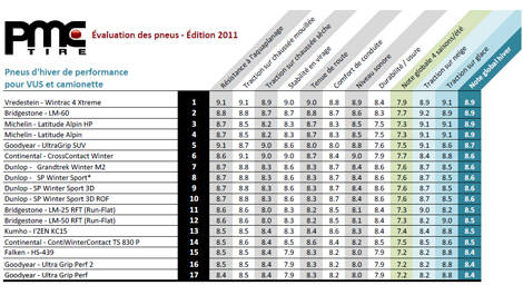 Évaluation et comparaison des pneus d'hiver performance pour les camionnettes (camions légers) et les véhicules utilitaires sport (VUS) - pneus neige / glaceCette année, nous avons ajouté la marque Vredestein, une marque hollandaise de pneus de qualité, moins bien connue sur le marché canadien.