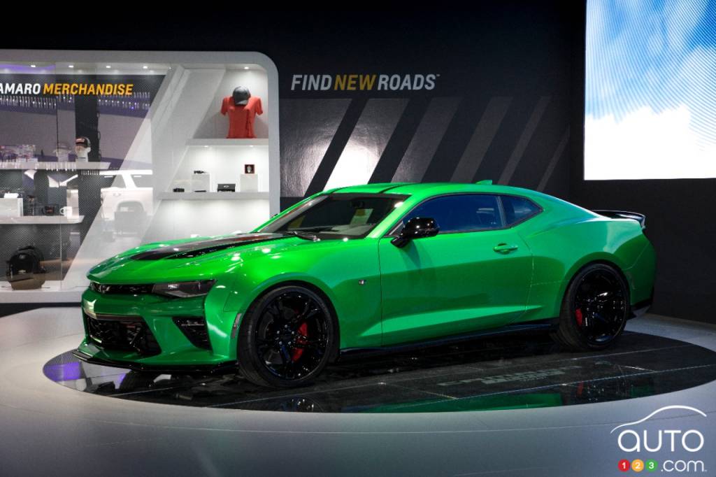 Les voitures européennes dominent bien sûr le Salon de l’auto de Genève, mais n’oublions pas les Japonaises comme la Honda Civic Type R, enfin dévoilée dans sa version de série, et les Américaines comme cette Chevrolet Camaro Track Concept vert satiné, qui demeure agréable sur la route, mais va plus loin en termes de performance sur la piste.
