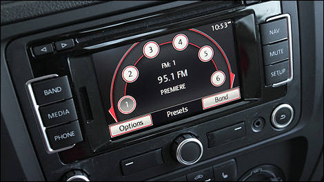 | Une chaîne audio AM/FM/Sirius Premium 8 avec écran tactile et chargeur à 6 CD est l’apanage de la Jetta Highline. (Photo: Luc Gagné/Auto123.com) |