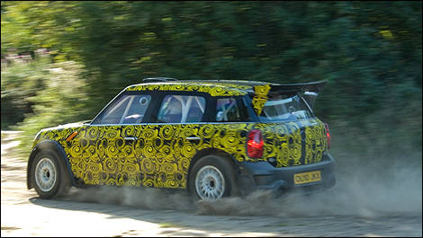 Ces premiers tours de roues ont été effectués cette semaine, non loin de l’usine de la structure Prodrive de David Richards (qui s’occupera du programme WRC de MINI), dans le Warwickshire, sur asphalte et sur terre.