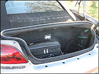 Tu parles d'une voiture musclée! Ça m'a tout pris pour ouvrir le coffre! C'est vrai que je me remettais d'une opération et que j'étais plus faible que d'habitude, mais certaines personnes pourraient avoir autant de misère que moi. Imaginez... un dur à cuire du volant qui n'est même pas capable d'ouvrir le coffre de sa Viper. Vraiment embarrassant! Et pour un bolide aussi imposant, le coffre est pas mal petit. Néanmoins, Tim a pu y ranger sa mallette et moi, ma trousse d'appareil photo. J'estime qu'il aurait était possible d'y placer encore quelques bagages pour une sortie le week-end, ce qui me convient.