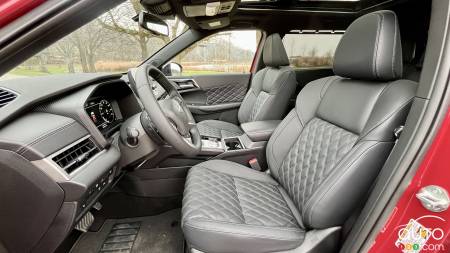 Personne ne sera impressionné par l’habitacle du Nissan Rogue PHEV. On est définitivement en terrain connu. Dans leur version à essence, les Rogue et Outlander se différencient notamment par le nombre d’occupants qu’ils peuvent accueillir. Le Rogue peut recevoir cinq occupants alors que l’Outlander, en théorie, permet d’accueillir jusqu’à sept occupants grâce à une banquette d’appoint.