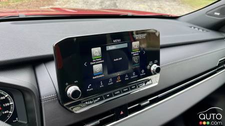 À bord du nouveau Rogue PHEV, on retrouve à peu près tout ce qui est la norme en ce moment sur le plan technologique, sans toutefois proposer de grandes innovations. Sous les yeux du conducteur loge une instrumentation numérique de 12,3 pouces aux côtés de laquelle prend place un écran tactile de 9 pouces. On compte aussi des ports USB pour les fous et les fins.