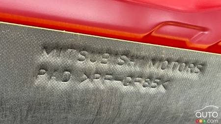 Parlant du capot, nous avons relevé l’inscription « Mitsubishi » sur une pièce d’isolant placée sous le capot. C’est la seule inscription de la marque aux trois diamants que nous avons trouvée au cours de notre recherche sommaire. Nissan cache plutôt bien son jeu. Mieux que Honda le Prologue, par exemple, sur lequel les mentions “General Motors” sont plus que nombreuses.