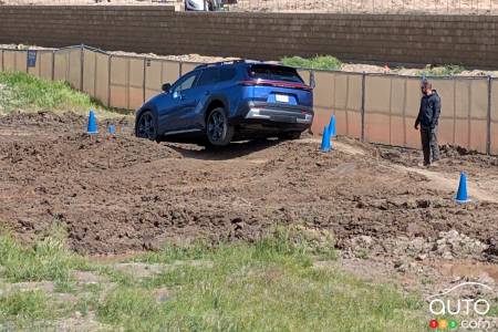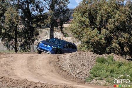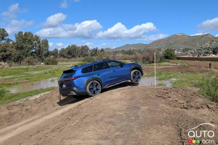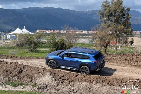 Sur la portion hors route, le freinage régénératif (quatre niveaux au choix) et les systèmes X-Mode ont aidé à franchir toutes sortes de rochers, de bosses et de boue avec facilité, comme on l'attend d'une Outback ou d'un Forester. Le fait d'être un VÉ avec son couple constant et instantané en fait une bête un peu différente à apprivoiser lors des ascensions sur terrain boueux, mais le X-Mode aide néanmoins à faire le travail. Le bouton permettant d'afficher à l'écran l'image de ce qui se trouve au sol devant le véhicule a été utilisé généreusement.