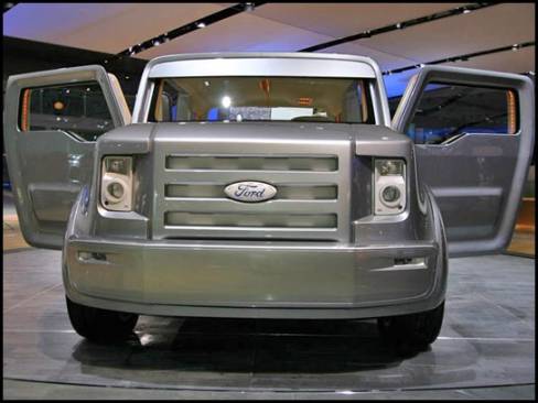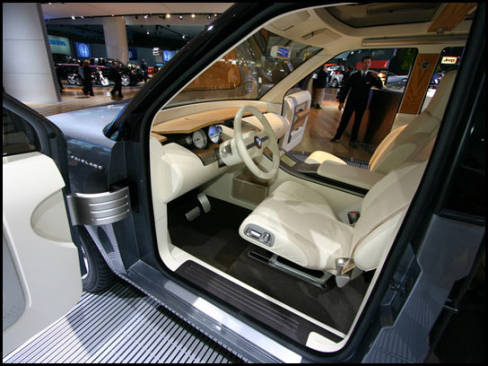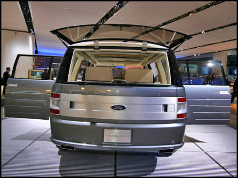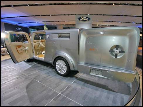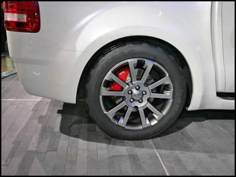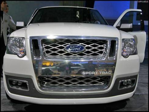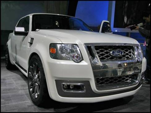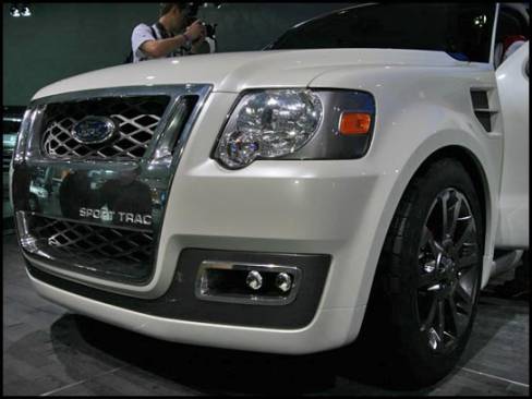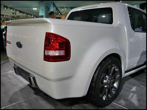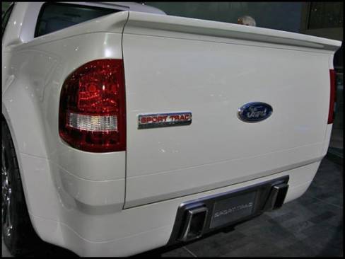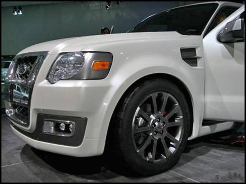 13:45 - La camionnette/sport-utilitaire Sport Trac Concept est munie d'un moteur V8, d'une suspension abaissée dont la section arrière est indépendante et de roues de 21 pouces.