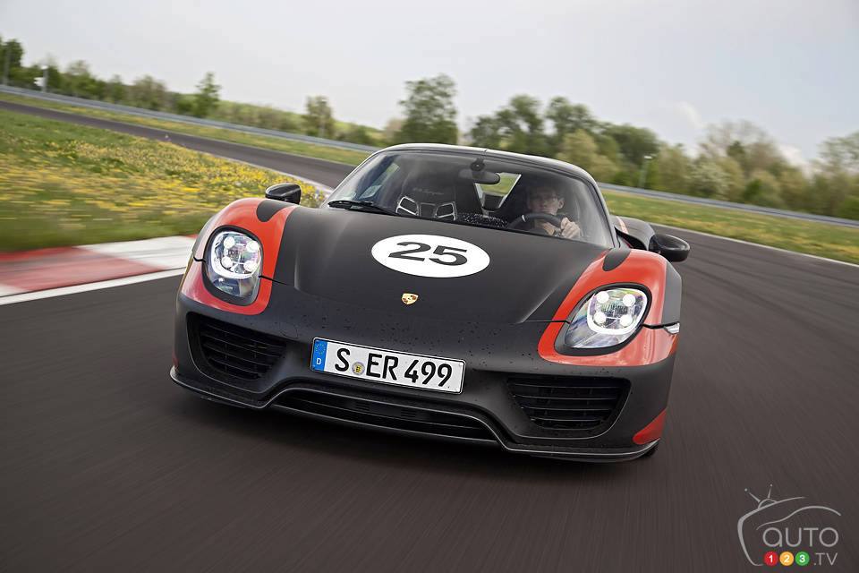 C'est au Salon de Francfort, le 10 septembre prochain, qu'aura lieu la première mondiale de la Porsche 918 Spyder. Cette super voiture enfichable, dotée d'une puissance de 887 chevaux, atteint 100 km/h en 2,8 secondes (pour une vitesse maximale de 340 km/h) et affiche une consommation de carburant moyenne exceptionnelle, se situant entre 3,0 et 3,3 L/100 km.