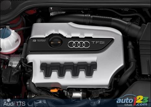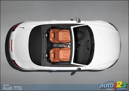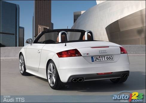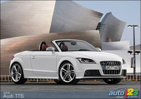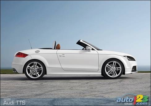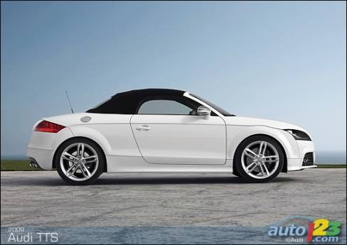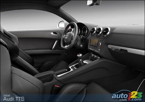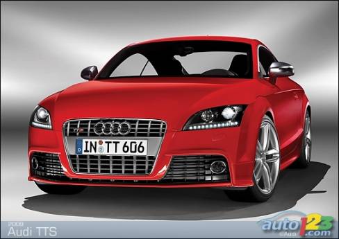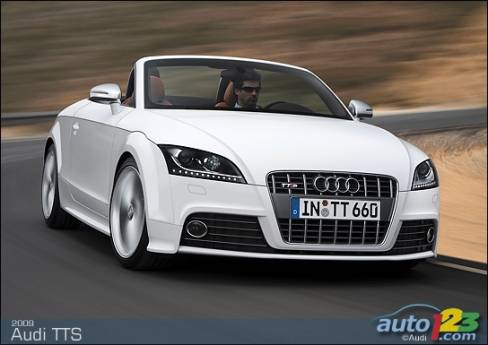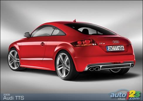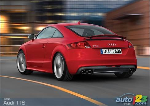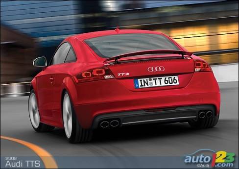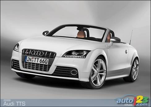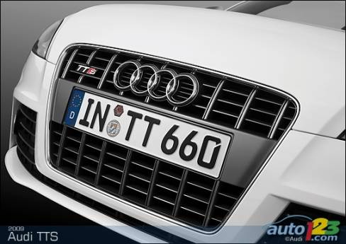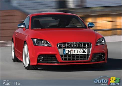 La sportive TT d'Audi est passée sous le bistouri et sera bientôt offerte en version haute performance TTS -- coupé et roadster. Le faciès de celle-ci comprend des prises d'air optimisées, des phares accentués de DEL et un nouveau tablier exclusif, sans oublier des roues de 18 pouces, des phares au xénon et un aileron à déploiement automatique en fonction de la vitesse. La TTS est alimentée par une version retravaillée du réputé moteur turbocompressé de 2,0 litres du constructeur allemand. Le bloc-moteur est identique, mais la culasse et l'admission révisées ainsi que le turbocompresseur plus imposant permettent de hausser la puissance disponible à 272 chevaux.