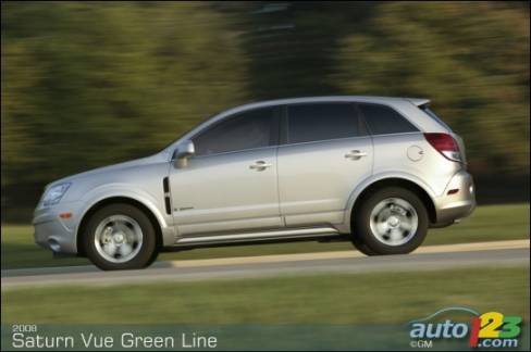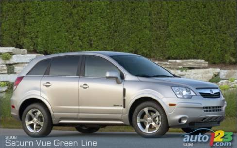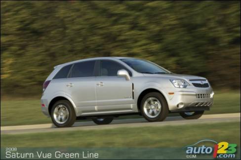 GM a annoncé dernièrement sa politique de prix et ses cotes de consommation pour le VUS hybride Saturn Green Line. À un prix de 30 790 $, Le Saturn Vue Green Line est le VUS hybride le moins cher sur le marché canadien; il est même plus abordable que certaines berlines hybrides de la concurrence. Pour ce qui est de la consommation, avec une cote combinée ville et route de 7,3 litres aux 100 kilomètres, le Vue Green Line devient le VUS qui présente la meilleure consommation de carburant sur le marché. Dans les faits, il vient coiffer le CRV, le RAV-4 et, même, les berlines Accord et Camry. En réalité, avec une telle consommation, le Vue Green Line montre une autonomie de 1200 kilomètres sur un seul plein de carburant. Pensez-y ! Ottawa-Toronto aller-retour sans faire le plein.