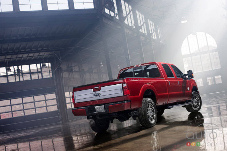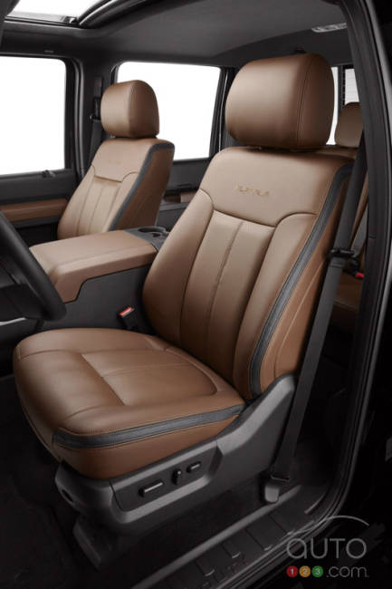 L'indomptable Ford Série F offrira aux acheteurs des modèles Super Duty un petit extra quand elle débarquera en 2013 : la toute première édition Platine, forte d'une version de SYNC avec MyFord Touch exclusive aux camionnettes. Un navigateur, une caméra de recul, le démarrage à distance, des rétroviseurs électriques télescopiques et un pédalier à réglage électrique seront également livrés de série.