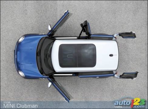 Préparez-vous à une MINI «maxi». Étirée de 24 cm par rapport à la voiture régulière (3,7 m), la nouvelle et unique MINI Cooper Clubman 2008 offre un meilleur accès, plus d'espace intérieur et aussi plus de poids sur la route. Les dimensions extérieures accrues engendrent un dégagement plus généreux au niveau des jambes à l'arrière (+8 cm). Il en va de même pour la tête. Bien sûr, le volume de chargement augmente lui aussi: 260 L (+100) avec les dossiers arrière relevés et 930 L (+250) lorsqu'ils sont rabattus.