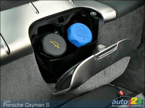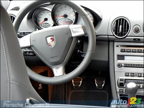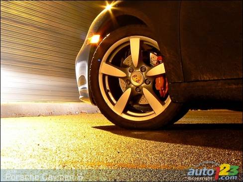 Lorsque le six cylindres à plat niché au centre de la Porsche Cayman S se réveille, il émet un gémissement enroué et irrégulier qui remet pratiquement sa santé en question. Pour un bolide rendant hommage aux grandes voitures à moteur central de l'histoire, il semble un peu déplacé. Mais bon, tout chanteur qui se respecte doit réchauffer ses cordes vocales avant une prestation. Certains affirment même que ces effets sonores augmentent les charmes du moteur boxer. En effet, la mélodie qui s'ensuit vaut bien l'attente pour la température de service.