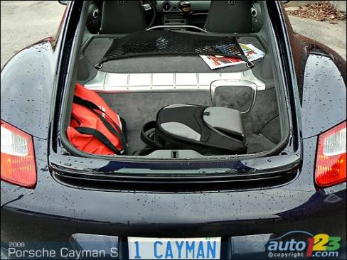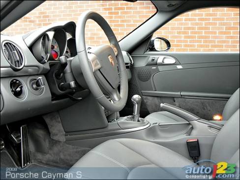 Lorsque le six cylindres à plat niché au centre de la Porsche Cayman S se réveille, il émet un gémissement enroué et irrégulier qui remet pratiquement sa santé en question. Pour un bolide rendant hommage aux grandes voitures à moteur central de l'histoire, il semble un peu déplacé. Mais bon, tout chanteur qui se respecte doit réchauffer ses cordes vocales avant une prestation. Certains affirment même que ces effets sonores augmentent les charmes du moteur boxer. En effet, la mélodie qui s'ensuit vaut bien l'attente pour la température de service.
