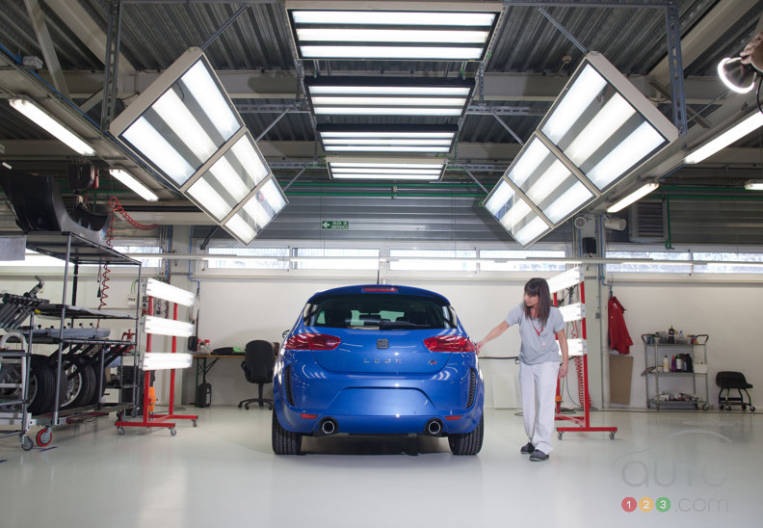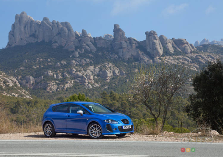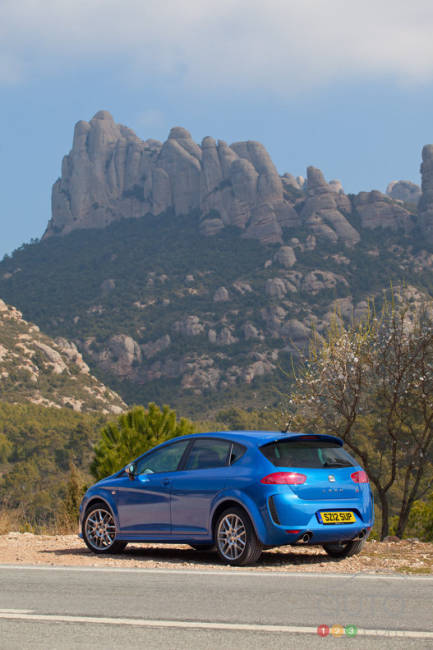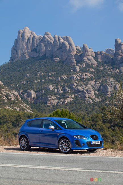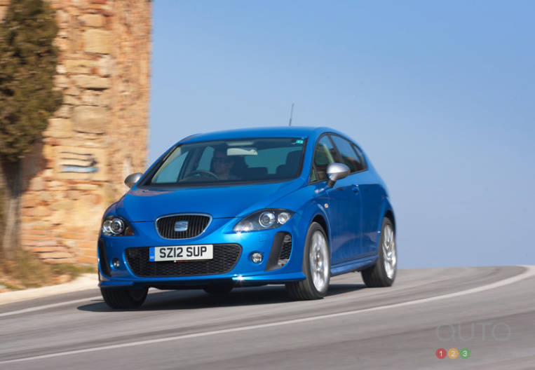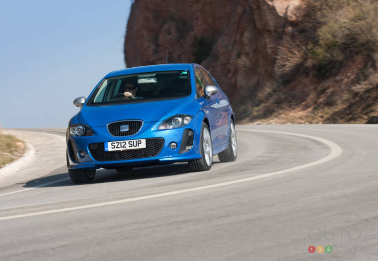 Le constructeur espagnol vient de lancer son dernier petit modèle incendiaire, la Leon FR+ Supercopa. De la taille d'une Volkswagen Golf, la Leon à hayon se décline en de nombreuses versions, dont la Leon FR+ animée par un quatre-cylindres en ligne turbo de 2,0 litres larguant 211 ch ou encore un turbodiesel de 2,0 litres fort de 170 ch et 258 pi-lb de couple.
